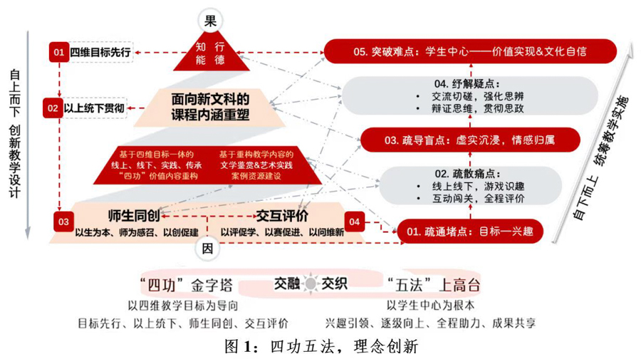 周韬为了让学生能学有所用、有效接收知识,在备课时首先制定了“知、行、能、德”的四维目标,主动与学生沟通交流,共同打造“专属化”课程。她以学生为中心,通过设计经典诗词、古典戏曲的观摩、实训、游戏以及知识图谱,结合艺术作品和历史背景,来增加学生记忆方式,让课堂“活”起来,以达到更好的学习效果,在教学创新中实现教学相长。有时候,学生的讨论和分析,也让周韬从中得到启发,这样的“双向奔赴”,让她和学生实现了共同成长。周韬经常这样说:“教学需要创新,创新的最终目标是为了让学生将生硬的背诵方式转变为主动式、体验式的理解。”