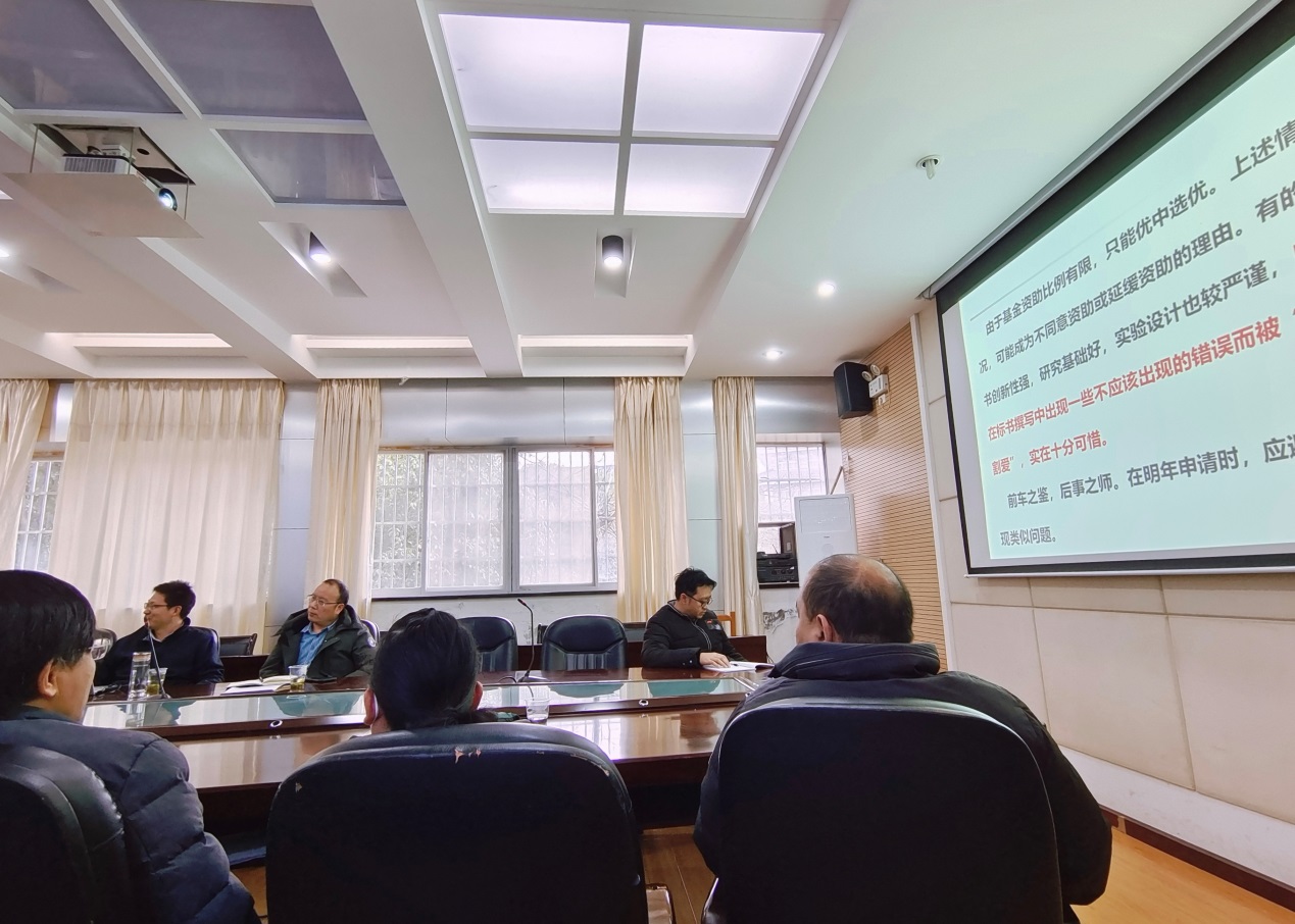 易群教授以深入浅出的语言分享了关于申报国家自然科学基金的个人经验和体会,并结合国家自然科学基金的新动态和变化讲授了如何从选题入手再到申报书的撰写要点和技巧等。讲座结束后,我院教师与易群教授还进行了深入的学术科研交流。