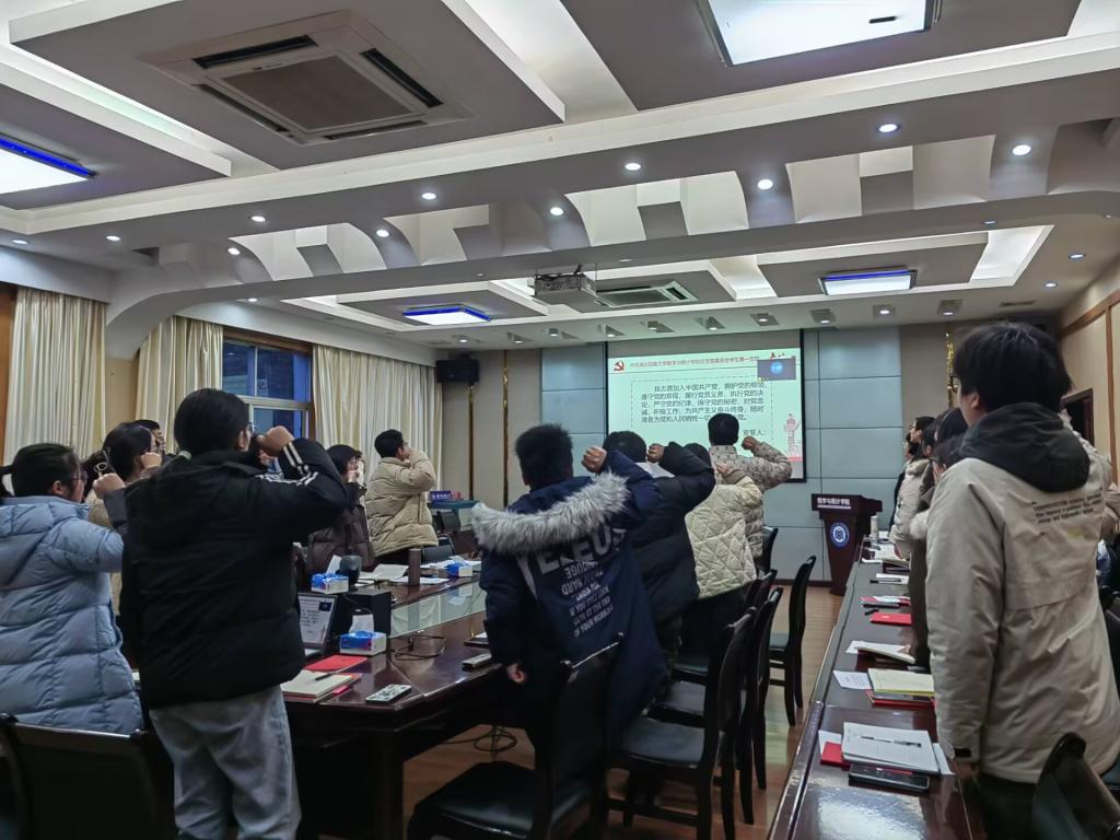 会议第一项,王羽同志汇报党费缴纳情况。会议第二项,廖祥宇同志带领全体党员和预备党员重温入党誓词。会议第三项,向丽静同志诵读《党章》第三十二条,强化党员对党章的理解。会议第四项,杨媛媛、张雄同志带领大深入学习党的二十届三中全会精神、习近平总书记考察湖北重要讲话精神和习近平在二十届中央纪委四次全会上的重要讲话精神,全体党员认真研学。
