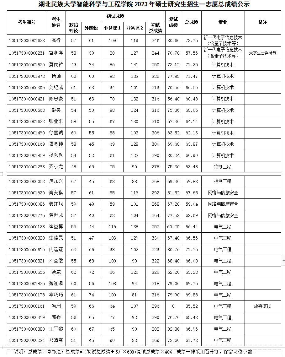 8858cc永利官网智能科学与工程学院2023年硕士研究生招生一志愿总成绩公示